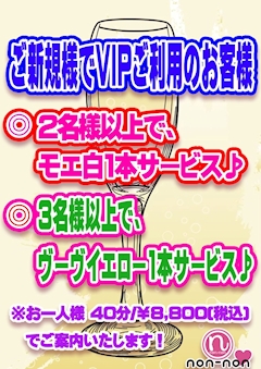 〇2名様以上のご来店で、モエ白1本サービス♪